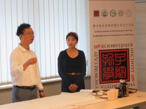 The Chinese Megatrend University Center, in collaboration with the Confucius Institute in Novi Sad, organized an attractive Chinese calligraphy workshop on Tuesday, May 29, 2019. This ancient skill and art was brought to the students by top Chinese calligraphers Sue Feng and Lan Jao. Mr. Sue gave students a brief lecture on the history of calligraphy and how to paint and relate to literature.