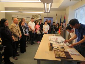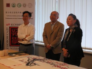 Chinese calligraphers donated an artistic painting to the university on behalf of the Confucius Institute in Novi Sad. This event was attended by cultural attaché Sui Jinglan and third secretary Gao Sue, then director of the Confucius Institute in Novi Sad, Mr. Chen Hui, Vice-Rector of Megatrend University for International Cooperation, prof. Prof. Slobodan S. Pajović, and Vice-Rector for Public Relations, prof. Dr. Milivoje Pavlovic.